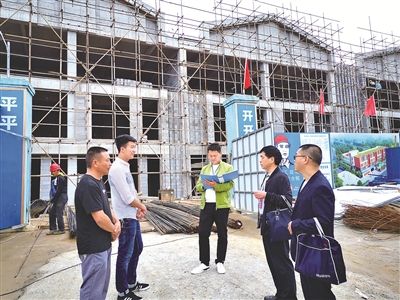 贵州省黔东南苗族侗族自治州岑巩县纪委监委聚焦全县易地扶贫搬迁情况强化监督检查,推动相关政策落实落细。图为5月7日,该县纪检监察干部到大榕易地扶贫搬迁安置点了解项目建设进度。杨敏 摄