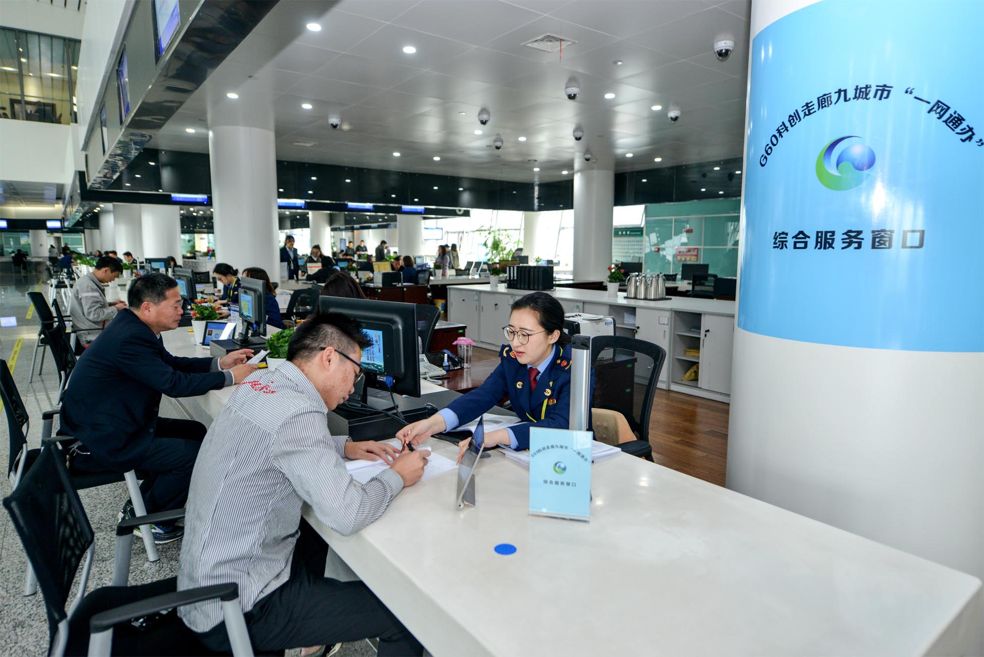 杭州、苏州、合肥等9个长三角城市积极推进政务服务“一网、一门、一次”改革,实现一网通办,以跨城市证照审批办理为重点,涉及企业设立、行政许可等30余项审批服务事项,真正实现让企业和群众“最多跑一次”。图为在浙江省湖州市长兴政务服务中心,来自长兴的市民正在办理杭州的营业执照。(图片来源:视觉中国)
