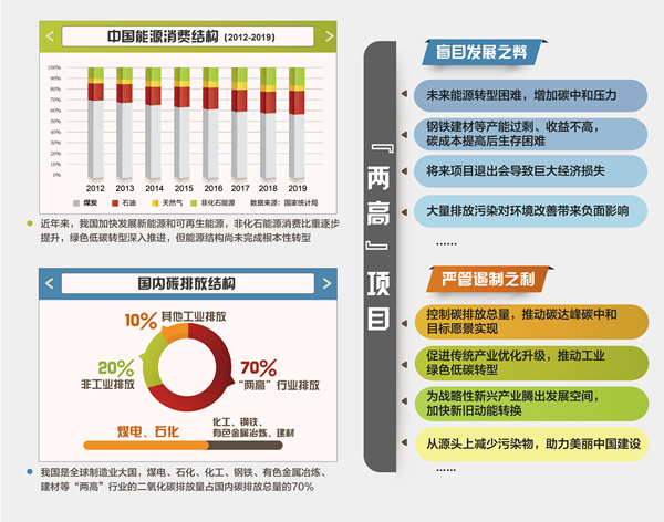 当前,我国产业结构仍然偏重,能源体系高度依赖煤炭等化石能源,能源消耗和污染排放量大。严控“两高”项目,已经成为碳达峰、碳中和工作的当务之急和重中之重。