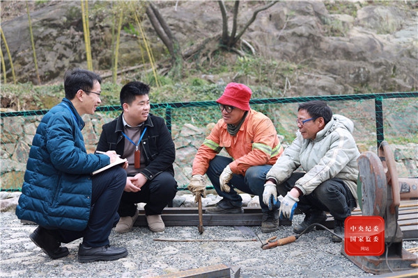 浙江省象山县陈乡东旦渔村驻村第一书记陈峥玙在调研村内民宿经营和旅游项目施工情况,收集有关意见建议。(浙江省象山县纪委监委供 石炳全 摄)
