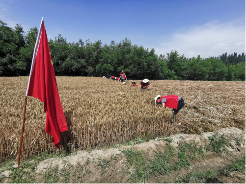 六月的和田大地,绿树成荫、麦浪滚滚,一派丰收的喜人景象。为帮助农民做好夏收工作,和田地区纪委监委机关70余名党员干部积极响应地委号召,走进洛浦县恰尔巴格乡古勒巴格村、奥克其村、铁热克艾日克村的田间地头,拿起镰刀、扛起小型收割机,帮助基层群众抓紧抢收,确保夏收不误时、复播不断档、夏管跟得上,夯实致富增收基础。
