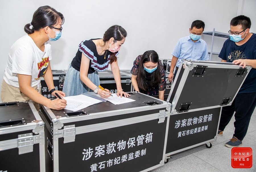 图为湖北省黄石市纪委监委审查调查人员移交登记暂扣的涉案物品。何戈 摄