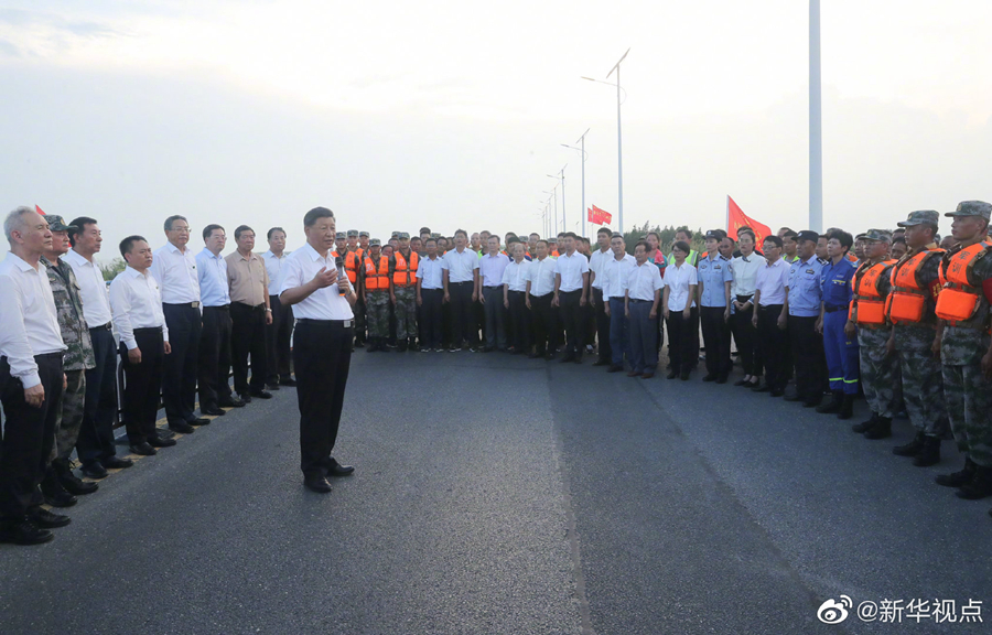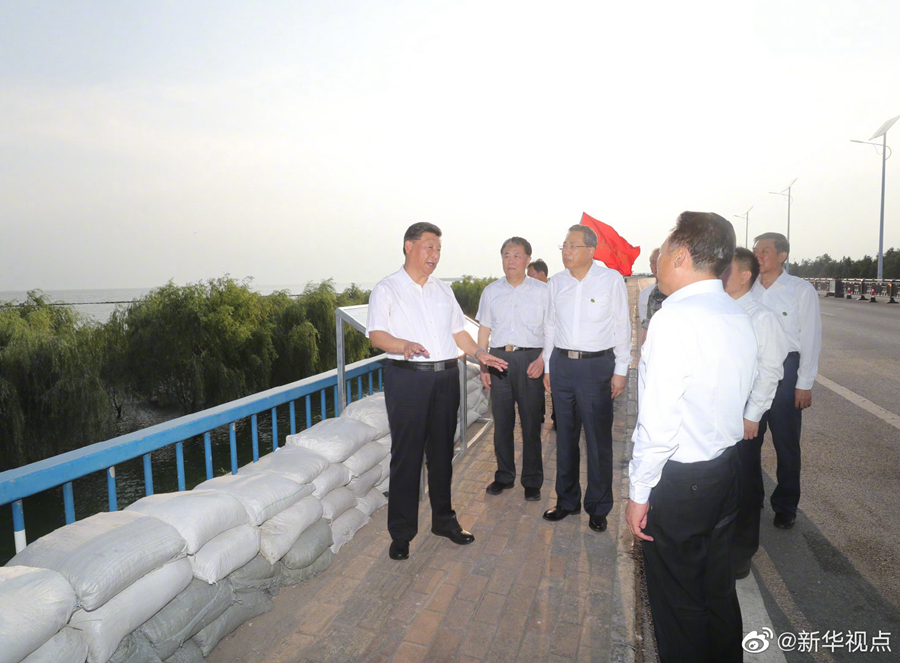 习近平总书记19日下午在安徽省合肥市考察调研。他在肥东县十八联圩生态湿地蓄洪区巢湖大堤罗家疃段,察看巢湖水势水情,看望慰问防汛抗洪一线人员、先进典型代表和参加抗洪抢险的解放军、武警部队官兵。当天下午,习近平在合肥还参观了安徽创新馆和渡江战役纪念馆,了解安徽省科技创新和新兴产业发展情况,重温革命历史、缅怀革命先烈。(文字记者:张晓松 摄影记者:鞠鹏 王晔 燕雁)