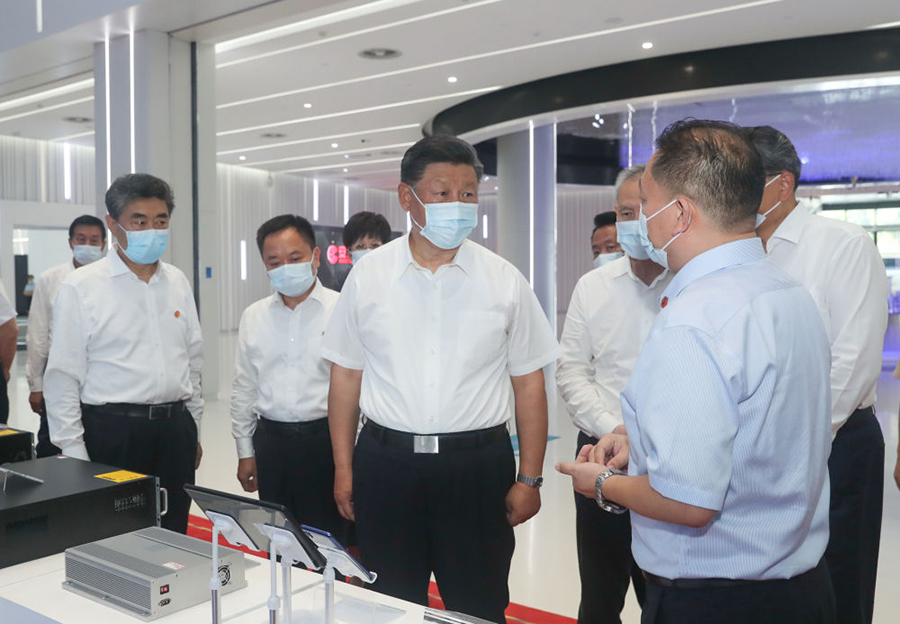 8月19日,习近平参观安徽创新馆,了解安徽省科技创新和新兴产业发展情况。(新华社记者鞠鹏 摄)