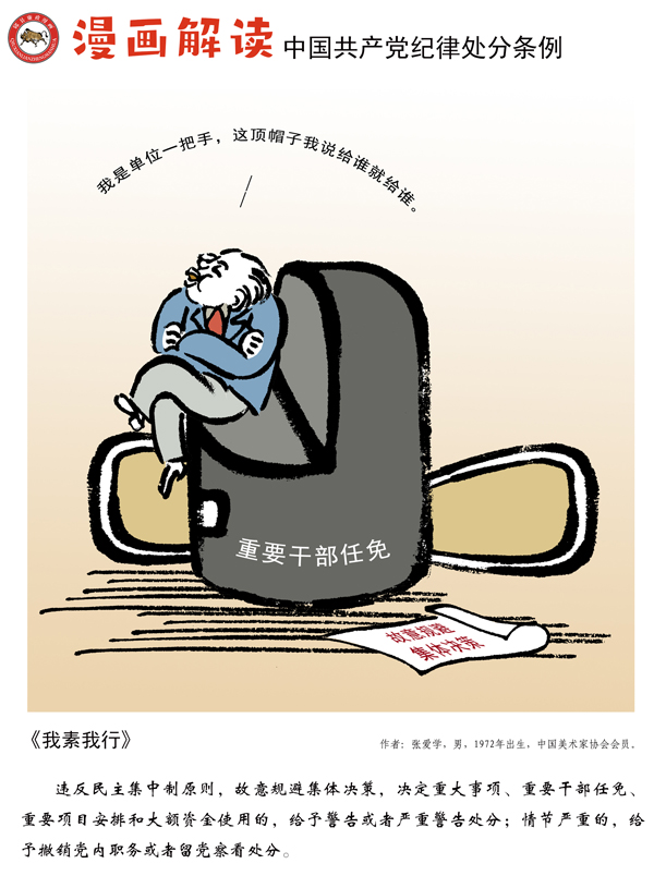 编者按:纪律是我们党的生命线,加强纪律建设是全面从严治党的治本之策。为深入贯彻落实十九届中央纪委四次全会关于加强党纪国法教育的部署要求,强化党规党纪的学习宣传、贯彻执行,使铁的纪律真正转化为党员干部的日常习惯和自觉遵循,中央纪委国家监委网站联合河北省纪委监委,以漫画形式对《中国共产党纪律处分条例》进行解读,陆续连载刊发,敬请关注。