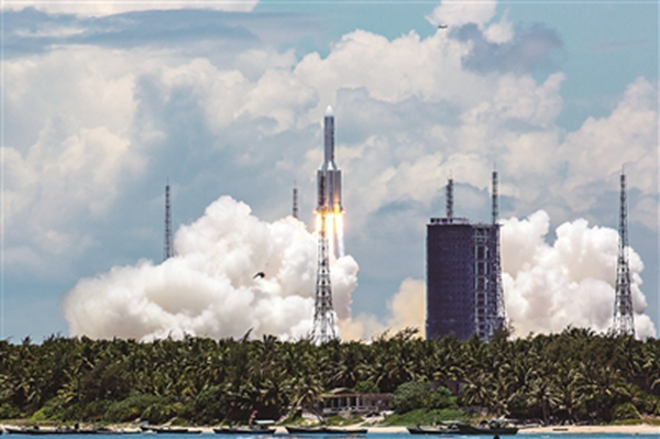 截至8月28日10时8分,我国首次火星探测任务“天问一号”探测器飞行里程已达1亿千米,探测器姿态稳定、能源平衡,多个载荷完成自检,确认设备状态正常,相关工作正按计划稳步推进。图为7月23日,天问一号探测器由长征五号遥四运载火箭发射升空。(图片来源:视觉中国)