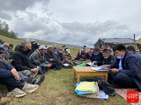 近日,新疆维吾尔自治区福海县纪委监委远赴180公里外的阿尔泰山“辉腾阿夏”牧场,开展信访举报宣传进牧区活动,让有诉求、有意见、有困难的群众在家门口就可以反映问题。岳童 摄