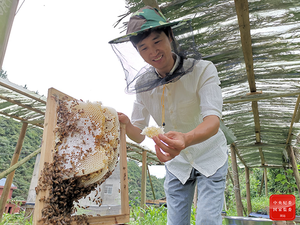 浙江省开化县音坑乡残疾人周忠生在当地政府的指导帮助下,利用当地资源发展中蜂养殖产业,实现年产值突破10万元。(浙江省开化县纪委监委供 胡萍 摄)