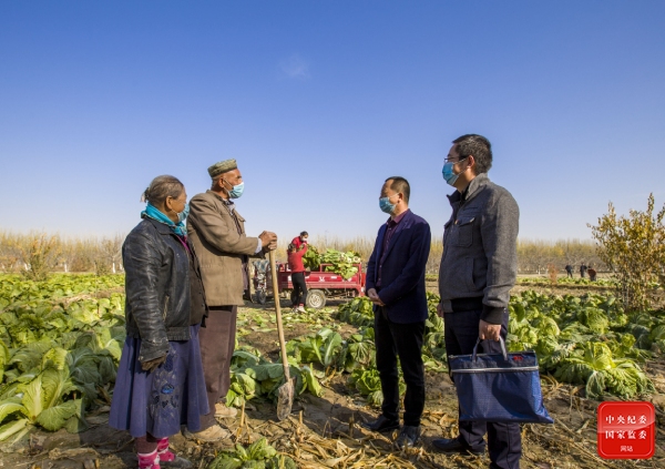 11月10日,新疆维吾尔自治区库车市纪委监委工作人员在该市阿拉哈格镇博孜村对扶贫领域专项治理情况进行实地走访,了解当地一把手抓整改责任落实情况。摄影/袁欢欢(库车市纪委监委干部)