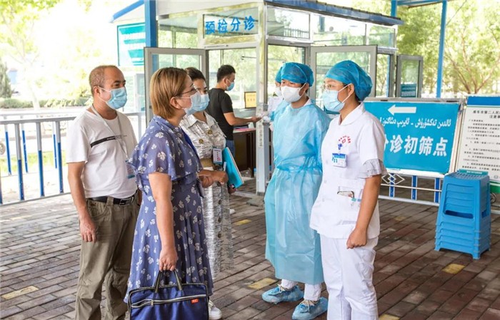 和田地区纪委监委督导组在和田县巴格其镇卫生院开展疫情防控工作监督检查,对该院防控措施落实情况、核酸检测组织情况等进行督导检查,确保各项防控措施落到实处。(李文婷 摄)