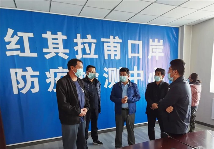 喀什地区纪委监委针对外防输入的严峻形势,成立监督检查组赴塔什库尔干县红其拉甫口岸开展疫情防控监督检查,督促各部门各单位持续做好口岸疫情防控和内部安全防护。(张前锋 摄)