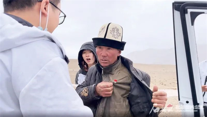 2021年7月2日,新疆维吾尔自治区阿克陶县木吉乡牧民阿布都加帕尔·猛德帮游客推车谢绝报酬,并亮出胸前党员徽章。