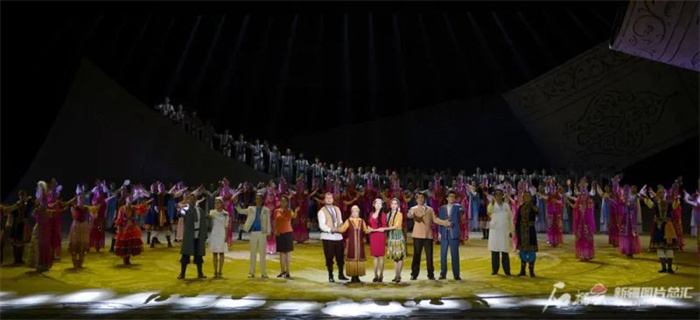 着力打造正确反映新疆历史、具有中华文化底蕴、彰显优秀民族文化特色、符合现代文明理念、反映各族群众现实生活的精品力作。图为精神文明建设“五个一工程”奖获奖作品歌舞剧《情暖天山》演出现场 。