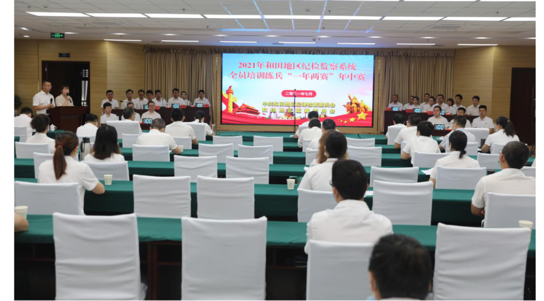 为深入贯彻落实自治区纪委监委关于全员培训竞赛练兵的统一安排部署,结合党史学习教育,和田地区纪检监察系统举办2021年全员培训竞赛练兵“一年两赛”年中赛,地区、各县市58支代表队174名纪检监察干部分9个赛场同步竞技。旨在通过竞赛检验学习效果,在比赛中找差距补短板,推动全地区纪检监察系统全员培训竞赛练兵由全面覆盖向实战练兵延伸、由应知应会向融会贯通拓展,增强纪检监察干部纪律意识、法制意识、廉洁意识,提高党纪法规知识储备量,让纪检监察干部在实战中练兵、在竞赛中成长,全面提升综合能力水平,以过硬的本领为和田地区各项事业持续向前向好发展提供坚强纪律保障。